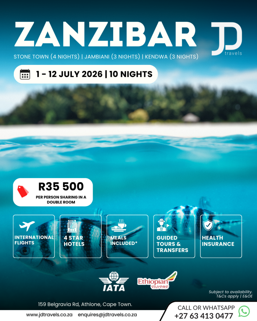 Travel comfortably with international flights from Cape Town, seamless transfers, and full group support throughout. With guided cultural tours, iconic island excursions, and generous leisure time, this journey allows you to experience Zanzibar beyond the ordinary — at a relaxed, enjoyable pace.
